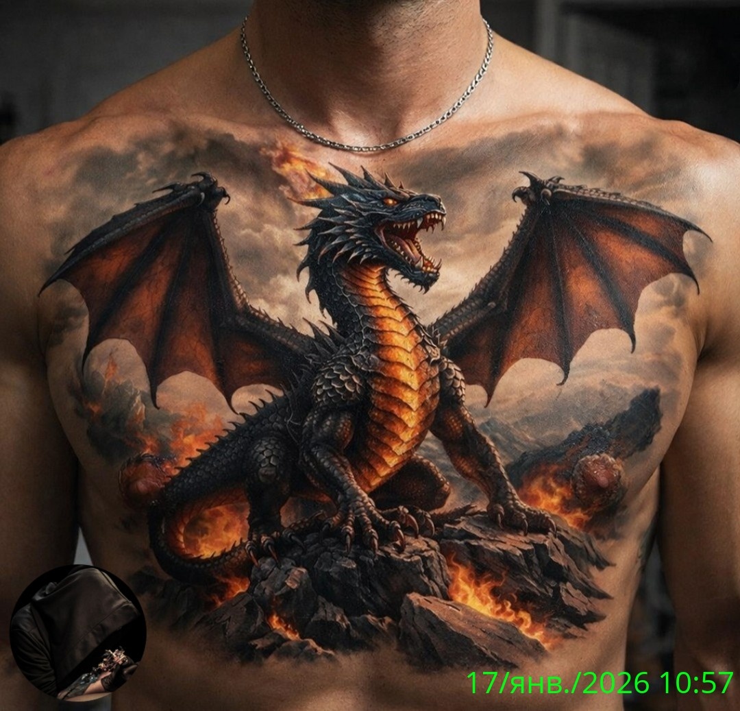 Татуировка дракона на груди — это не просто украшение, а мощный символ, который может многое рассказать о характере и мировоззрении человека. Дракон, изображённый на фото, выглядит величественно и грозно, что подчёркивает его значение как защитника и символа силы.