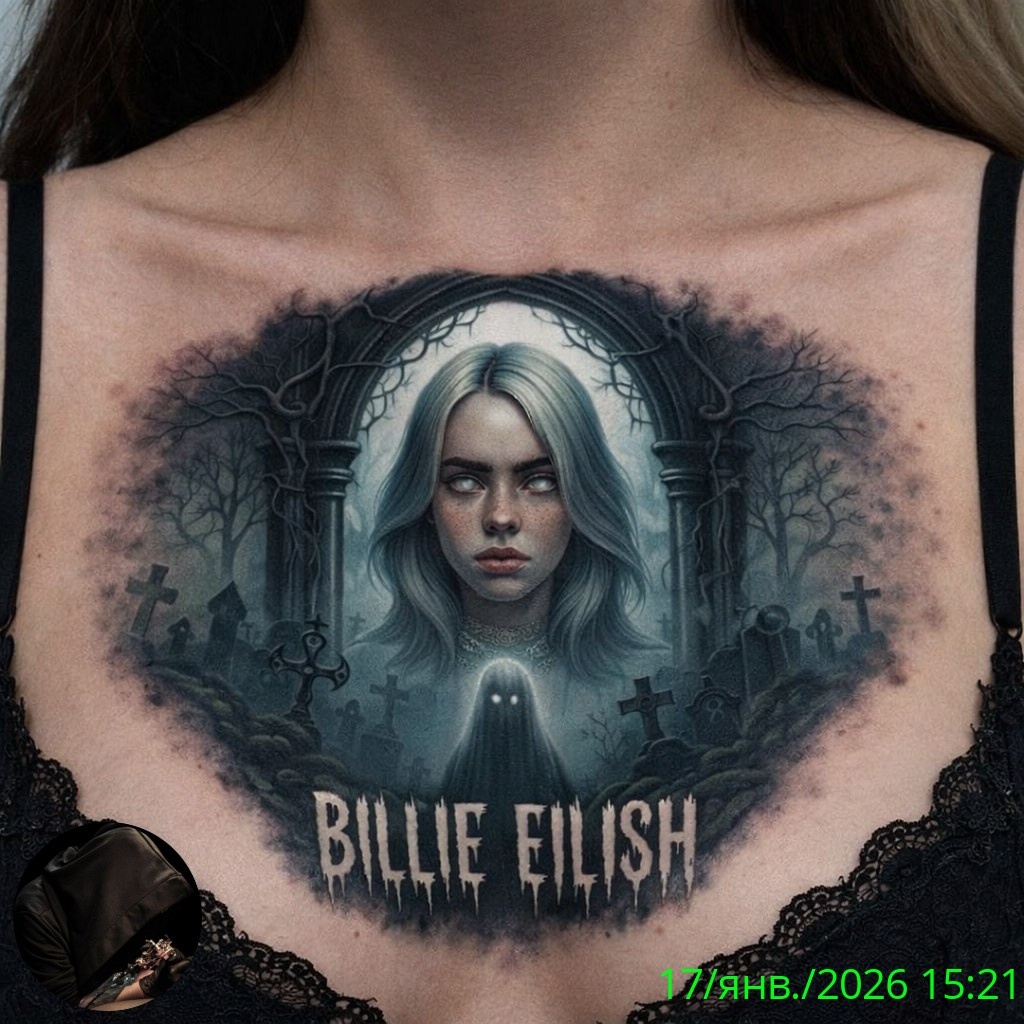 Татуировки давно стали неотъемлемой частью самовыражения, а в случае с Билли Айлиш они приобрели особую значимость. На представленном изображении мы видим её новую татуировку, выполненную в стиле хоррор. Это не просто рисунок, а целая история, которая рассказывает о мистике, страхе и загадочности.