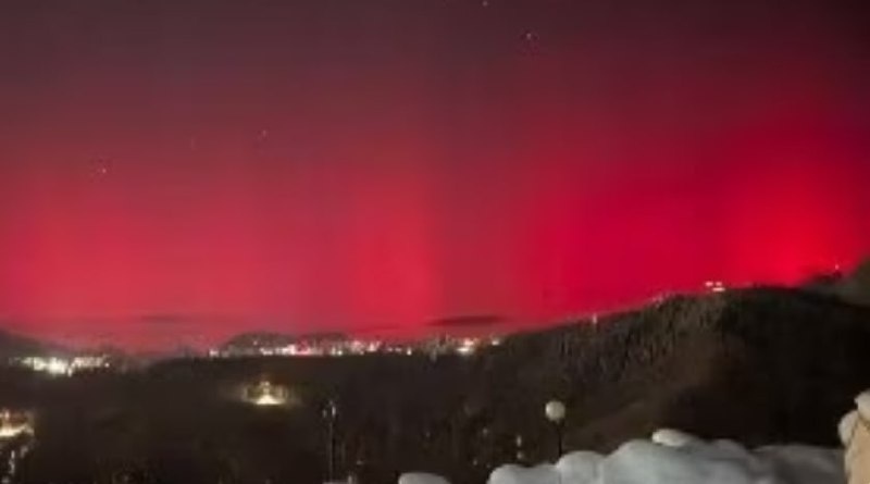 Полярное сияние озарило ночное небо над Краснодарским краем