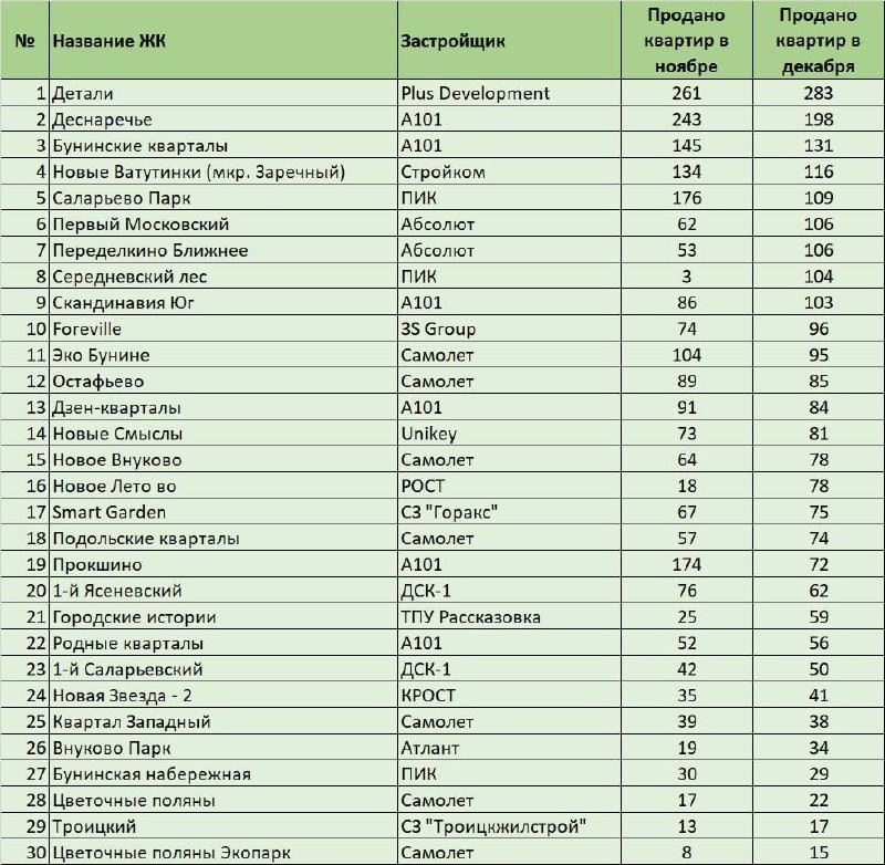 🔝 ТОП-30 самых продаваемых ЖК Новой Москвы — декабрь 2025