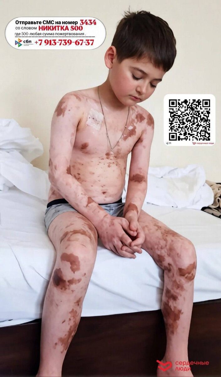 Друзья, я вынуждена еще раз прояснить ситуацию для тех, кто позволяет себе строить догадки, не разбираясь в теме. Для тех, кто путает тяжелейшее осложнение после пересадки костного мозга с обычными ожогами. Пожалуйста, вчитайтесь в эти цифры и факты: * 10 лет борьбы: Никита сражается с болезнью десятилетие. Это годы, а не дни. * Токсическая нагрузка: Он прошел бесконечное количество курсов химиотерапии и ежедневно принимает огромное количество тяжелых препаратов. * РТПХ (Реакция «трансплантат против хозяина»): Никите сделали пересадку костного мозга. К сожалению, клетки донора не прижились. В результате его собственное тело превратилось в одну сплошную открытую рану. Это не ожог — это то, как организм реагирует на отторжение чужеродных клеток. Давайте проявлять милосердие или хотя бы элементарную тактичность. Если не можете помочь — просто не пишите глупостей.