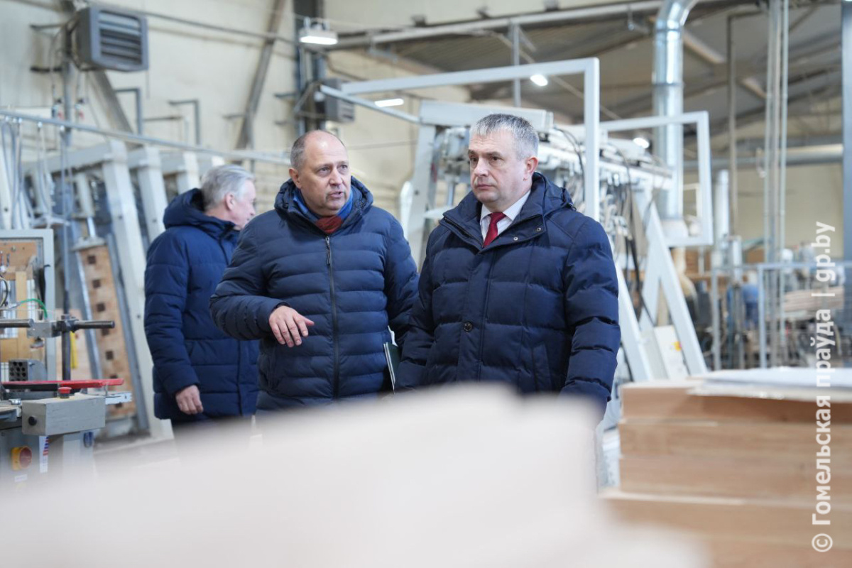 Председателю облисполкома Ивану Крупко рассказали о технологии изготовления столов и стульев, руководитель ознакомился с производственными мощностями предприятия, посетил цеха.