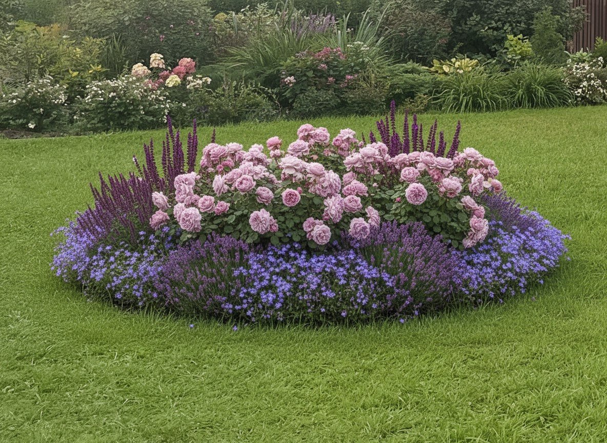 который состоится 27 января в 18:00 МСК А пока ловите промт для цветников, который вы уже сейчас сможете сгенерировать на фотографию вашего сада в нашем ИИ-дизайнере LandComp: Цветочная клумба длиной 5 метров и шириной 2 метра в классическом стиле английского коттеджного сада, спроектированная как островная композиция для кругового обзора. Мягкая, романтичная и гармоничная планировка. В центре пышные грозди английских роз нежных сиренево-розовых оттенков создают элегантные акценты. Вокруг них вертикальные акценты из шалфея 'Caradonna' поднимаются, словно