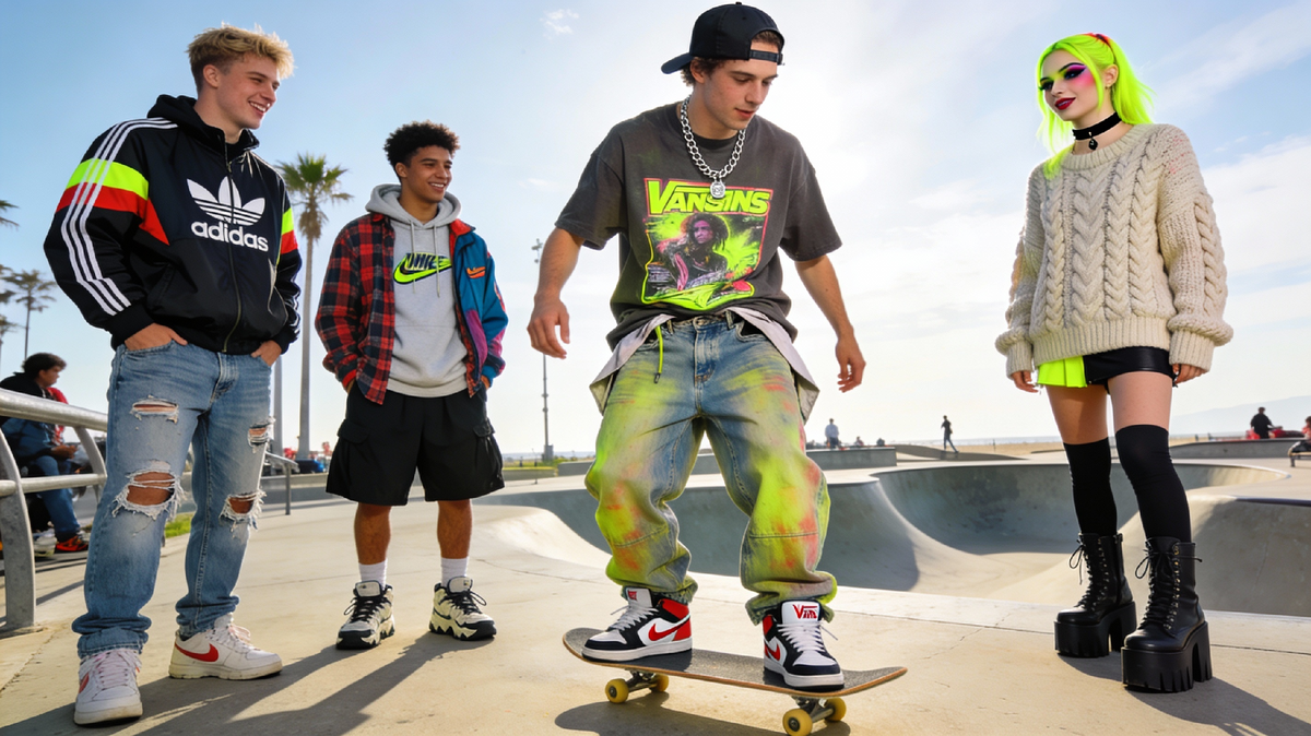 Мода: джинсы с низкой посадкой, футболки с принтами Y2K, винтажные кроссовки Nike и Adidas