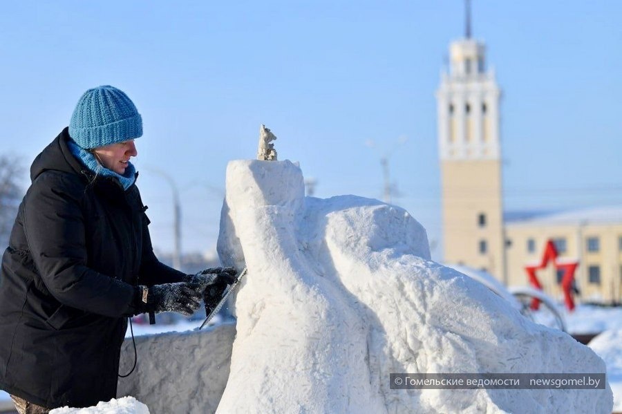 Белорусские мастера, вооружившись лопатами и стамесками, творят чудеса на площадке у Гомельского цирка. Кажется, сам мороз помогает им в этом волшебном деле. Подпишитесь на «Гомельские ведомости»