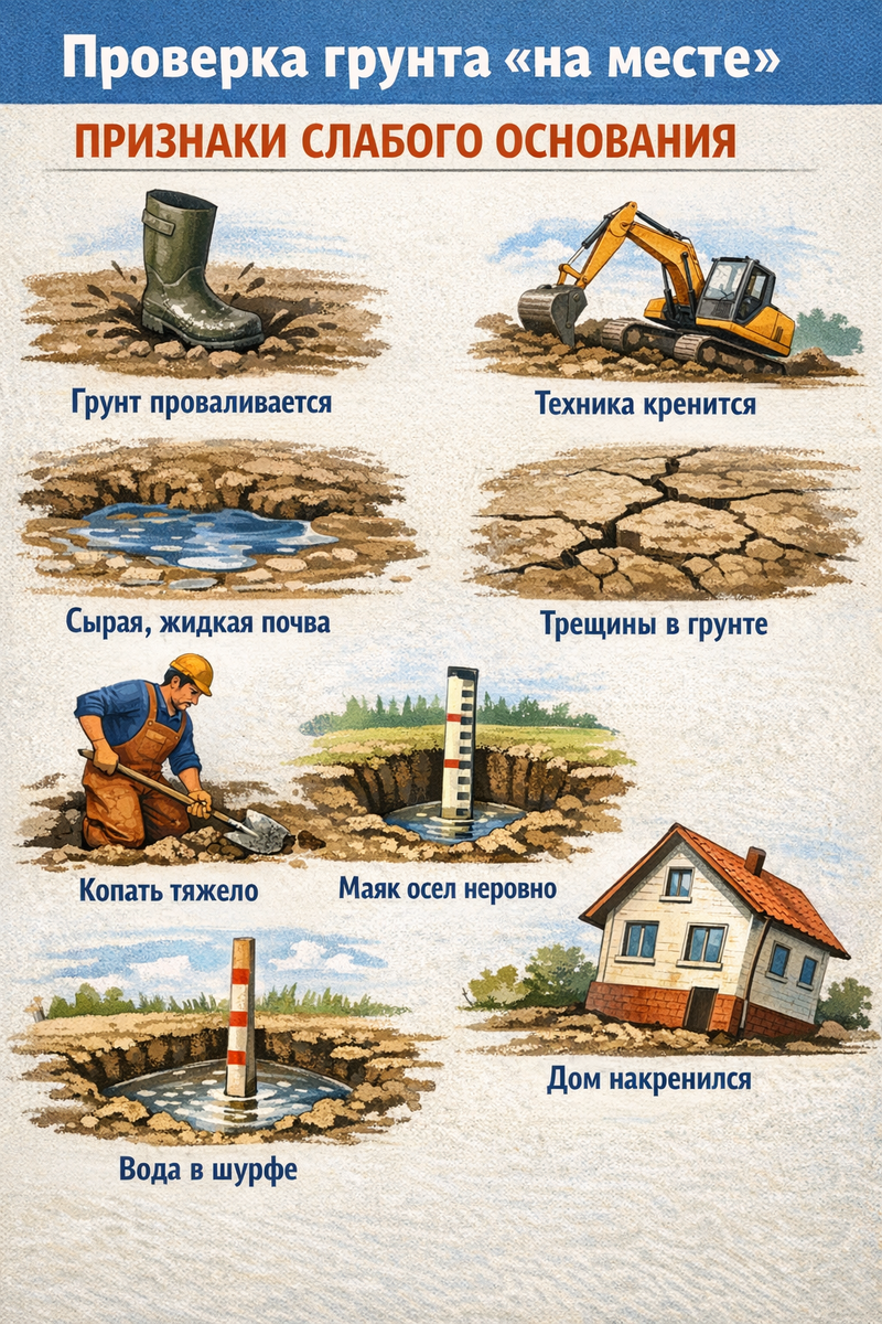 🧪 Проверка грунта “на месте”: простые признаки слабого основания