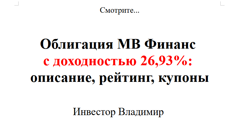 Облигация МВ Финанс с доходностью 26,93%: описание, рейтинг, купоны