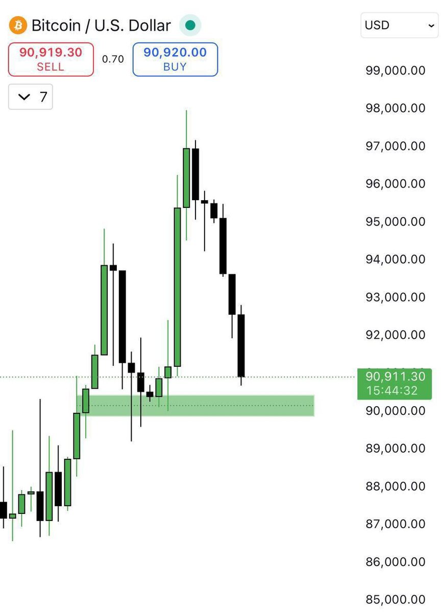) 📉 Факт: За ночь -2%, достигнута локальная цель $90.7k. Следующий шаг: Ожидаем погружение к ключевой поддержке $90 000. Сценарий 1: При сильном откупе от $90k — начало отскока к ~$92к. Сценарий 2: При слабой реакции — подтверждение продолжения коррекции. Ключевое — поведение цены у $90к. #BTC #Анализ #альтсезон BusineesEconomyBlockchain l Bybit