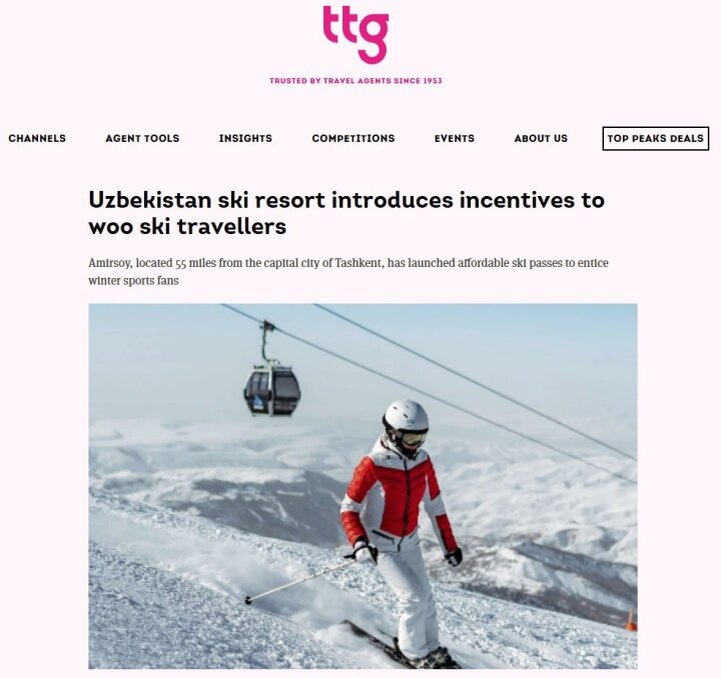 В пресс-службе Комитета по туризму Республики Узбекистан сообщили, что горнолыжный туризм страны оказался в фокусе внимания профильных СМИ Великобритании. Британская туристская деловая газета TTG (Travel Trade Gazette) опубликовала материал под заголовком "Горнолыжный курорт Узбекистана внедряет льготы для привлечения любителей лыжного отдыха", в котором рассматриваются меры по стимулированию въездного туризма в зимний сезон.