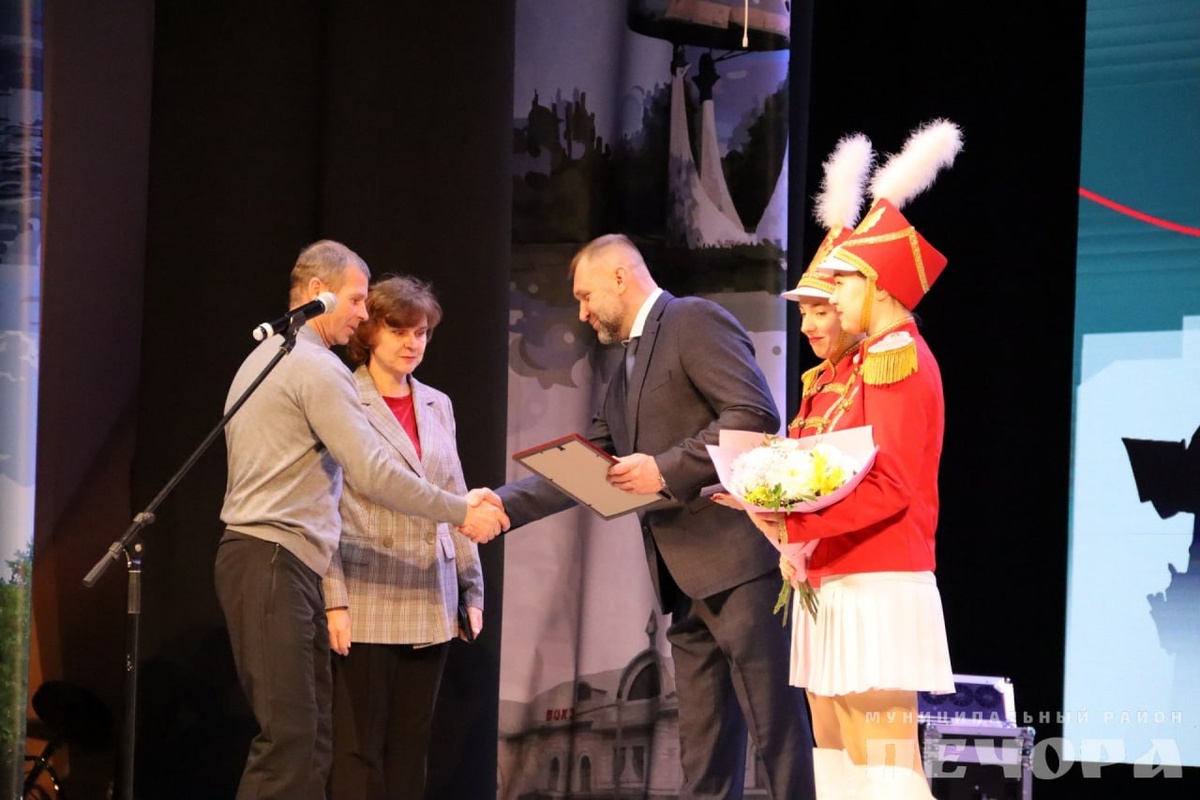 ». В фойе гостей встречала тематическая фотозона, где каждый мог запечатлеть себя в атмосфере праздника. Также была представлена выставка работ творческого объединения «Арт-график», здесь же гости смогли посетить книжную выставку о городе и приобрести сувениры ручной работы от местных мастеров и умельцев. Открыл торжественную часть глава муниципального района Олег Шутов. В своей речи он подчеркнул, что Печора – это, прежде всего, люди: те, кто строил город, кто трудится на его благо сегодня, и молодежь, от которой зависит его будущее. За пример бережного хранения семейных ценностей Сергею Тарасовичу и Маргарите Викторовне Зиняк была вручена медаль «За любовь и верность». А звание «Почетный гражданин муниципального района «Печора» за большой вклад в обучение и воспитание подрастающего поколения было присвоено Александру Михееву, педагогу дополнительного образования Дома детского творчества. Знак отличия «За заслуги перед Печорой» вручили Марине Поповой, руководителю гуманитарного пун
