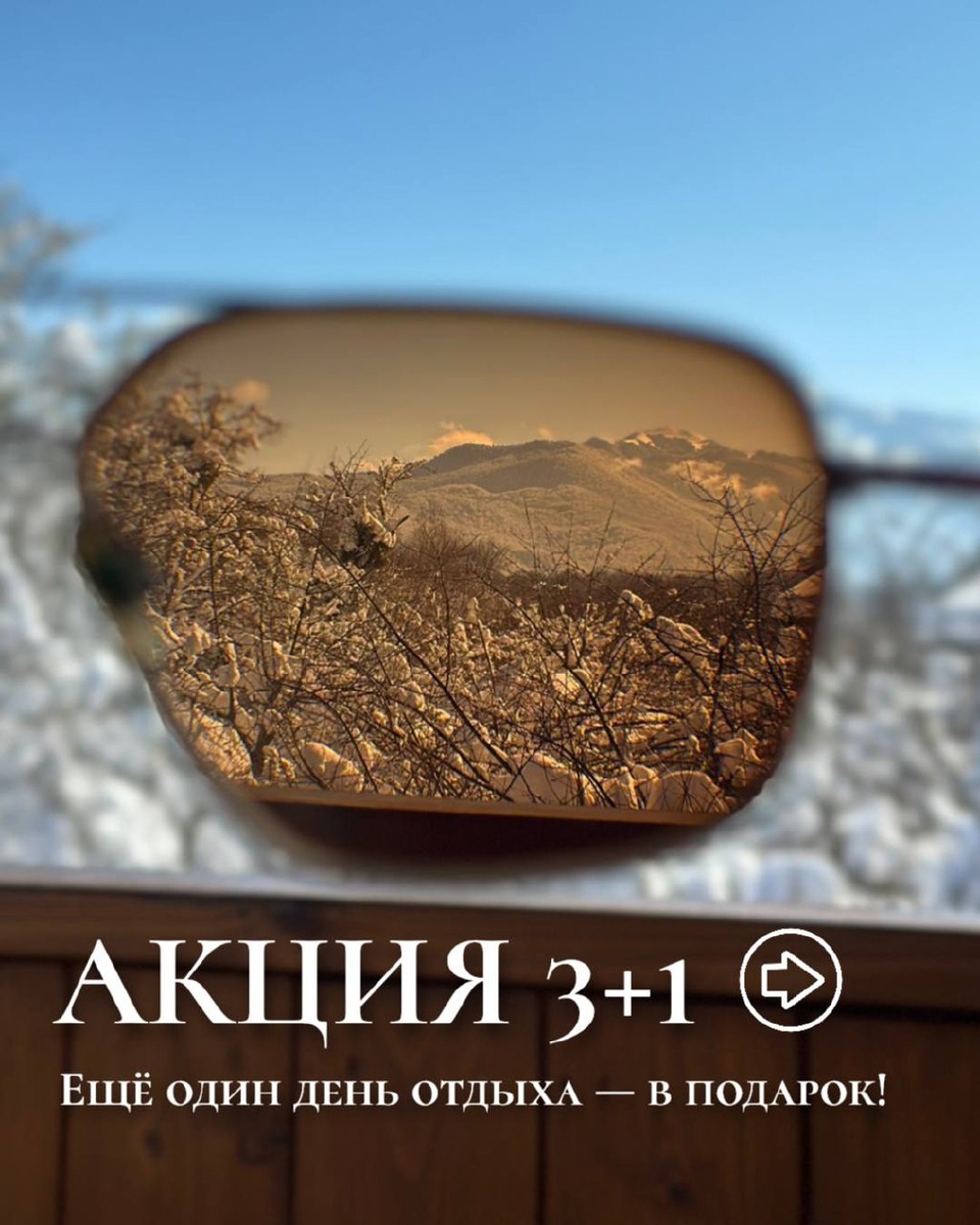 В ваше пребывание входит: — завтраки на все дни проживания — подогреваемый открытый бассейн (8:00–22:00) — финская сауна (14:00–22:00) — беседки и мангальная зона — детская комната с аниматором — настольный футбол и аэрохоккей — детская площадка — настольный теннис и бадминтон — парковка под видеонаблюдением + зарядка для электромобилей — в номере: халаты, тапочки, носочки, полотенца, косметика — Wi-Fi Дополнительный день — это больше времени для бассейна, комфорта и авторской кухни шеф-повара ресторана Дениса Сагова. Условия акции: 📅 с 20 по 31 января 2026 📍 только будние дни ⏳ минимум 3 ночи Продлите свой отдых. Напишите нам для бронирования ☺️