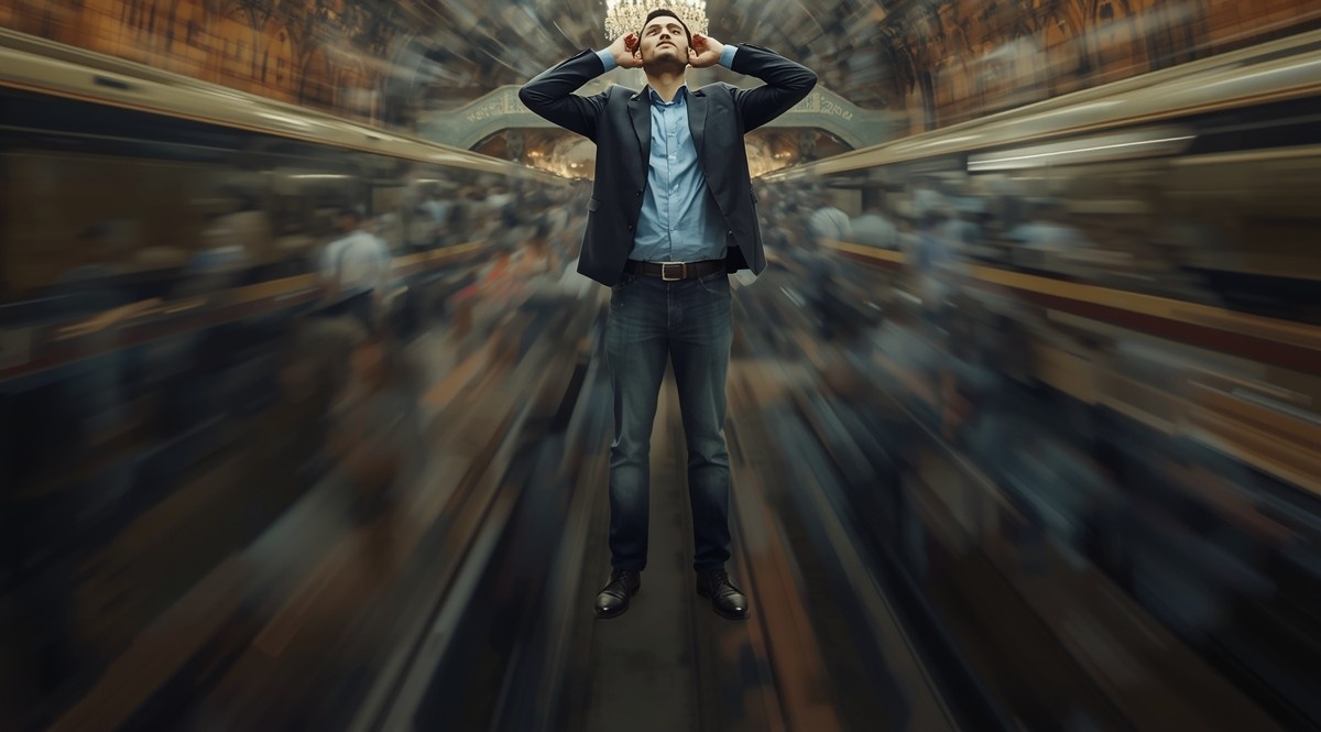 Гул толпы, грохот поездов, объявления — всё это внезапно затихает, будто вас накрыли звуконепроницаемым колпаком. Наступает абсолютная, давящая тишина длиной в 10-15 секунд, после которой звук снова