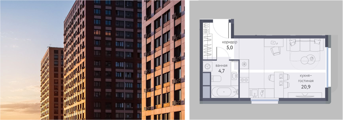 Бывает, что подбор длится месяцами: мы перебираем один проект за другим, ищем недооцененные лоты, скидки, выгодные условия, выезжаем на объекты, но пазл не складывается. А бывают молниеносные сделки, как пуля навылет. В конце года к нам обратился клиент за консультацией. Четкой стратегии у него не было, была лишь цель: успеть использовать вторую семейную ипотеку, но из-за ажиотажного роста цен на новостройки у него были сомнения, стоит ли заходить в эту историю на таких условиях. Бюджет клиента был небольшим – 13 млн ₽ с учетом маткапитала. При этом нужно было купить ликвидный актив в развивающейся локации с хорошим арендным потенциалом. И как раз во время консультации пришла рассылка о повышении цен в ЖК AFI Сиреневый парк на 2-3% со следующего дня. Мы решили быстро посмотреть доступные лоты под бюджет клиента в этом проекте и нашли интересную студию площадью около 30 квадратов на 14-м этаж с видом во двор. Цена чуть выходила за бюджет клиента, но мы смогли согласовать индивидуальную