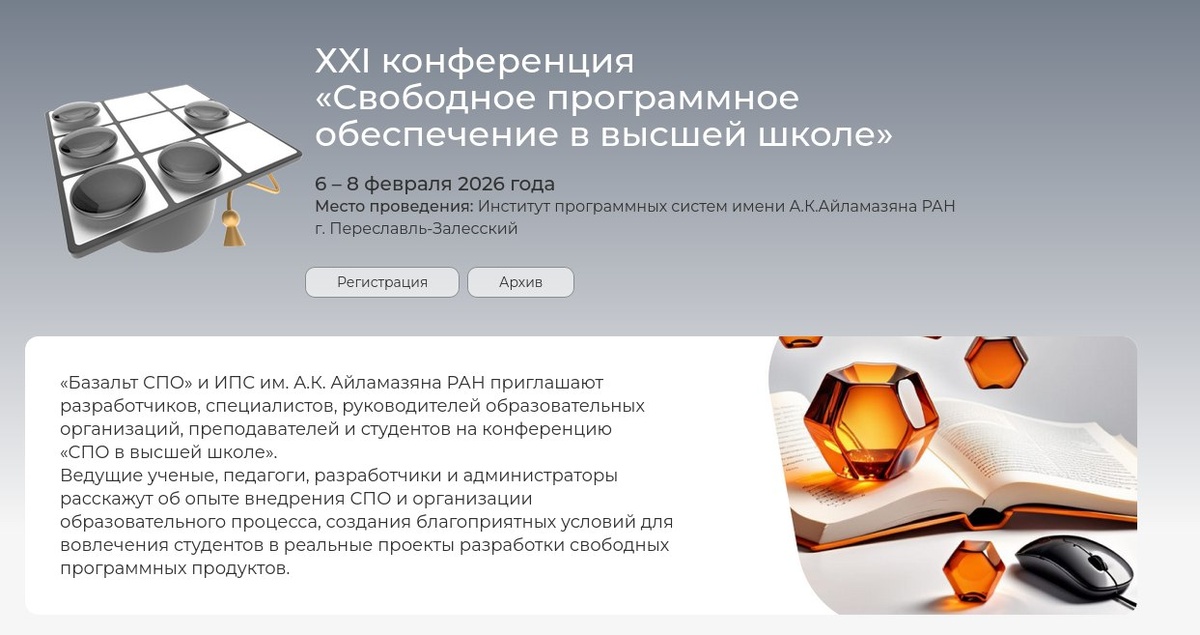 ⚡ Продолжается регистрация на XXI конференцию «Свободное ПО в высшей школе» (OSEDUCONF-2026) в Переславле-Залесском