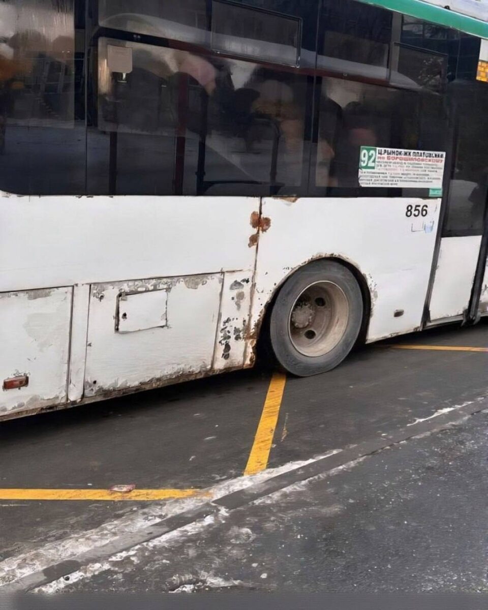 Автобус №92. Весь какой-то перекошенный и ржавый. За это платим билеты по новым ценам?