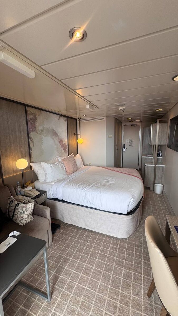 🚢 Из порта Бали в Сингапур. Это мой 6-ой круиз,а эмоции всё такие же как в первый раз😊 Маршрут получился просто шикарный: 🇮🇩 Индонезия-остров Бали и Ломбок 🇲🇾 Малайзия-Куала-Лумпур, Пинанг, Лангкави 🇹🇭 Таиланд -Пхукет 🇸🇬 И финишируем в Сингапуре 12 полных ночей именно то, что нужно, чтобы выдохнуть. Этот круиз я купила буквально в последнюю минуту, в начале декабря. В продаже оставалась всего одна каюта. Я, как это часто у меня бывает 😅, особо не вдавалась в детали: посмотрела, что есть балкон и всё. Быстро забронировала, потому что времени разбираться не было. Ну вы знаете… сапожник без сапог-для себя всегда в последний момент и с минимальной информацией. Разбираюсь уже по факту. Круиз, надо сказать, вышел недешёвым, и мы ожидали каюту чуть больше. В прошлый раз, когда мы шли на Celebrity из Гонконга в Сингапур, у нас была просторная каюта: кровать, диван для Марка как доп. место, много свободного пространства. А здесь кровать и кресло, которое не раскладывается, а доп