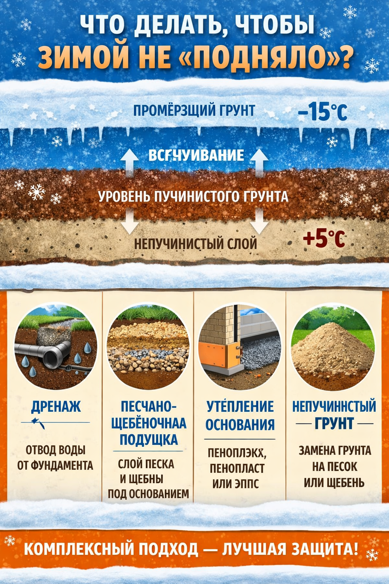 🛠️ Что реально стоит сделать до фундамента, чтобы зимой не “подняло”