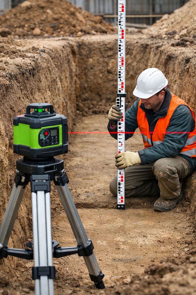 Если лазера нет — хотя бы натянутый шнур по колышкам и контроль глубины по точкам через одинаковый шаг. Но лазер, честно, окупается нервами с первого же фундамента.