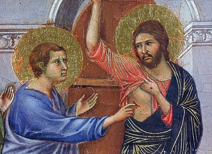 И вот Христос является ему и говорит: «Подай перст твой сюда и посмотри руки Мои; подай руку твою и вложи в ребра Мои; и не будь неверующим, но верующим» (Ин. 20:27).