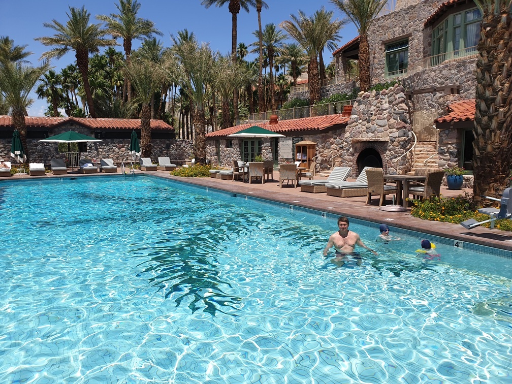 Доезжаем до «Badwater». 80 метров ниже уровня моря. 41 градус в тени. Нулевая влажность, а это означает высокую дегидратацию. Берем с собой воду и идем по серой грязной жиже — смеси песка и соли. Цель — дойти до середины, где вроде бы сохранилось в первозданном виде соляное озеро. Помню, что раньше оно было чуть ли не с самого начала. Метров через 200 бунтует младший. Ему жарко, ему надоело. Мама возвращается с ним в машину. Мы идем дальше со старшим. Но когда я вижу, что идти еще метров 500, что моему парню тяжело, но он не ноет, что времени уже два с копейками, а впереди у нас 800 километров пути, я решаю, что «ну его», и мы тоже поворачиваем назад, не дойдя до соляного озера. Григорий доволен — ему тоже было тяжело.