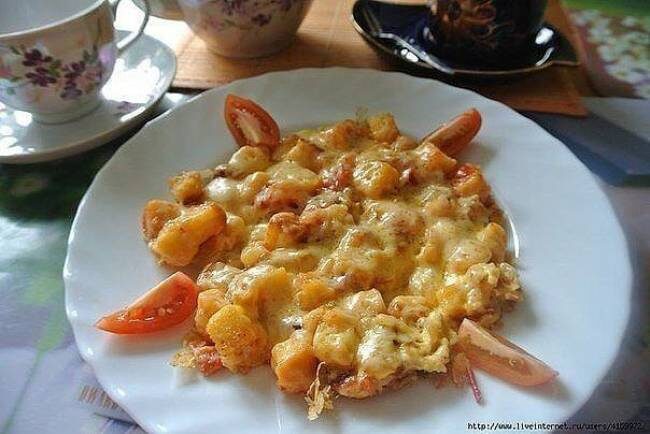 Посыпать тёртым сыром,накрыть крышкой, как сыр расплавится-Готово!