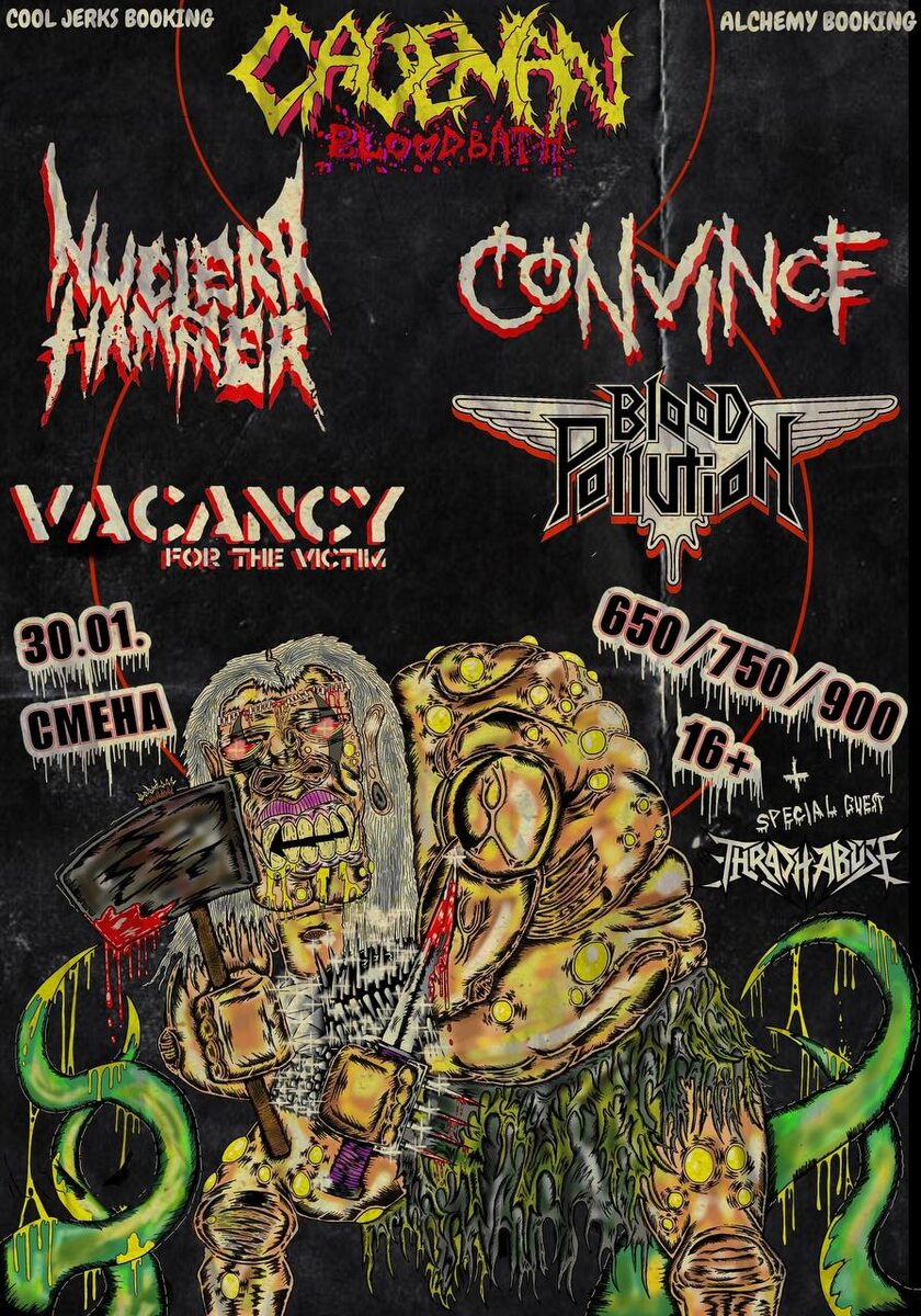 #black #death #metal #punk ► Caveman Bloodbath ● VK В столицу едут герои татарского варметала и нижегородские воины дибита. При поддержке крутых локальных метал- и панк-коллективов. Участники: ► Nuclear Hammer ● VK ► Vacancy For The Victim ● VK ► Convince ● VK ► Blood Pollution ● VK ► Thrash Abuse Билеты от 650₽