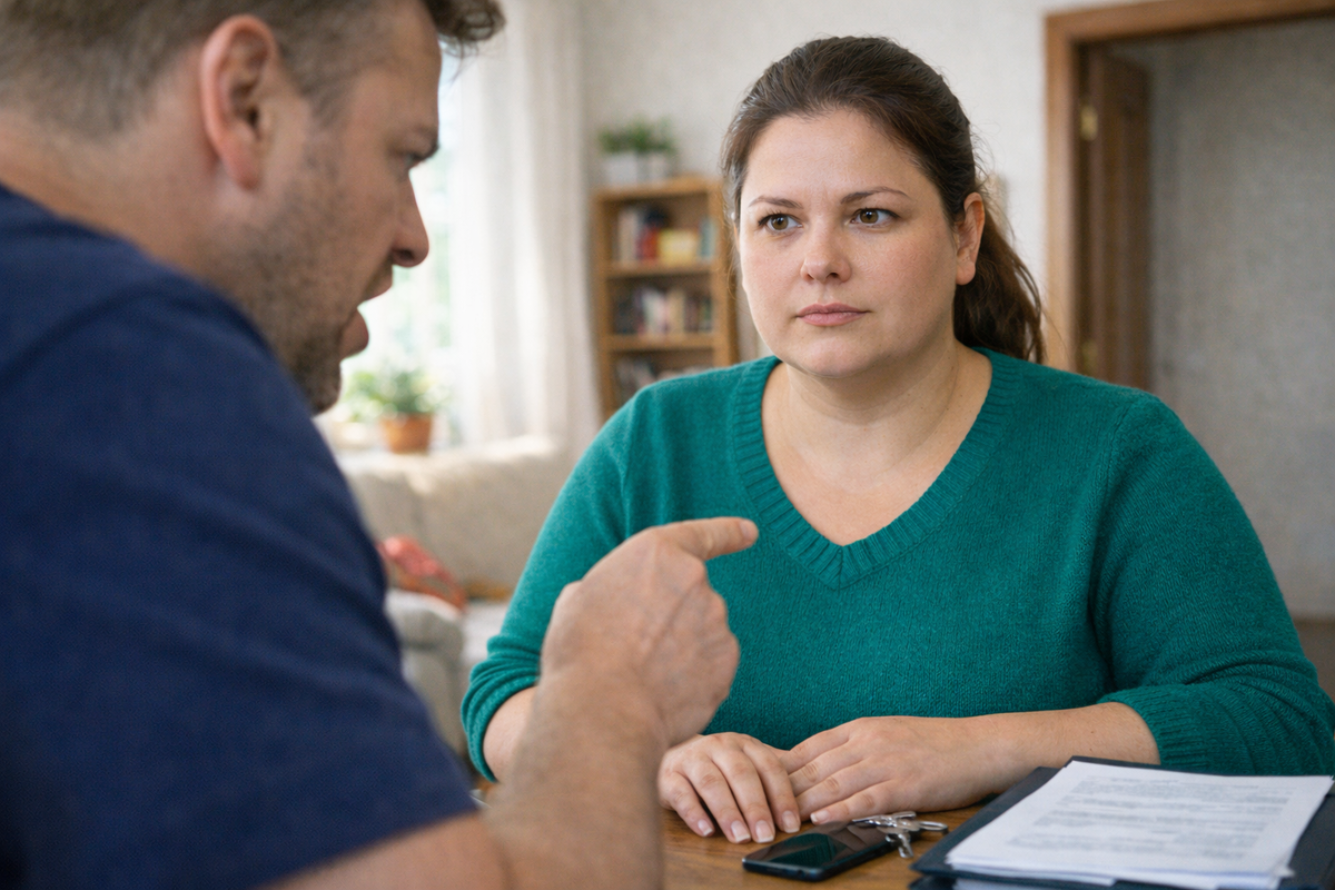 Тамара спокойно и последовательно изложила всё: квартира принадлежит только ей по документам, куплена до брака, муж внезапно потребовал её немедленно продать, угрожает и оказывает психологическое давление, уже без её ведома вызвал риелтора для оценки.
