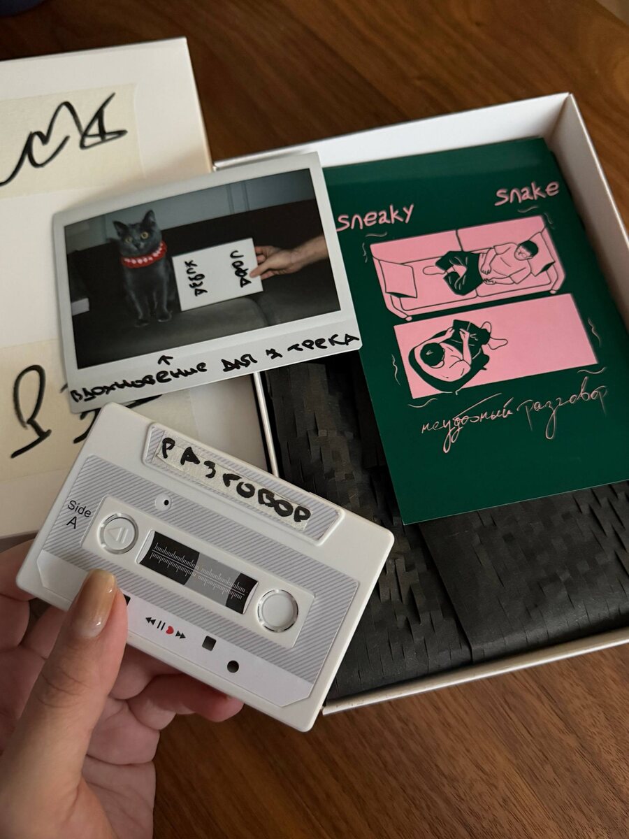 но, пока я прокрастинировала, сегодня мне пришла доставка, и отложить этот пост — просто невозможно в общем мне повезло, что меня окружают очень разные люди. особенно нежное отношение у меня к креативным пирожочкам, которые делают что-то нестандартное например, Рома, муж моей подруги, пишет реп. и в целом даже неплохой (а я тот еще эксперт в плохом репе!) прикиньте, человек в 30 лет, с обычной вполне традиционной работой, женой, кошкой и ипотекой по вечерам приходил домой и писал треки, придумывал музыку и тексты. и выпустил альбом!!! альбооом! а мне, как важному слушателю, ребята отправили подарок! и, надеюсь, лет через 20 я смогу продать его очень дорого! а послушать альбом можно тут а вы что делаете нестандартного? наверняка же есть какие-то интересные истории!