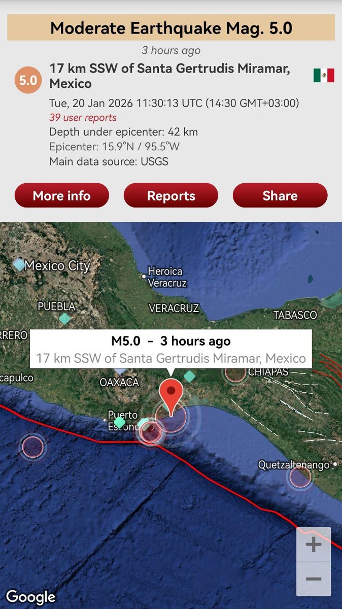 По Мексике сегодня прилетело ощутимое М5 (см. фото 1). Но ситуация на плите Кокос в паре с Карибской плитой допускает сильное продолжение (М6 и выше) в течение 9 дней (фото 2).