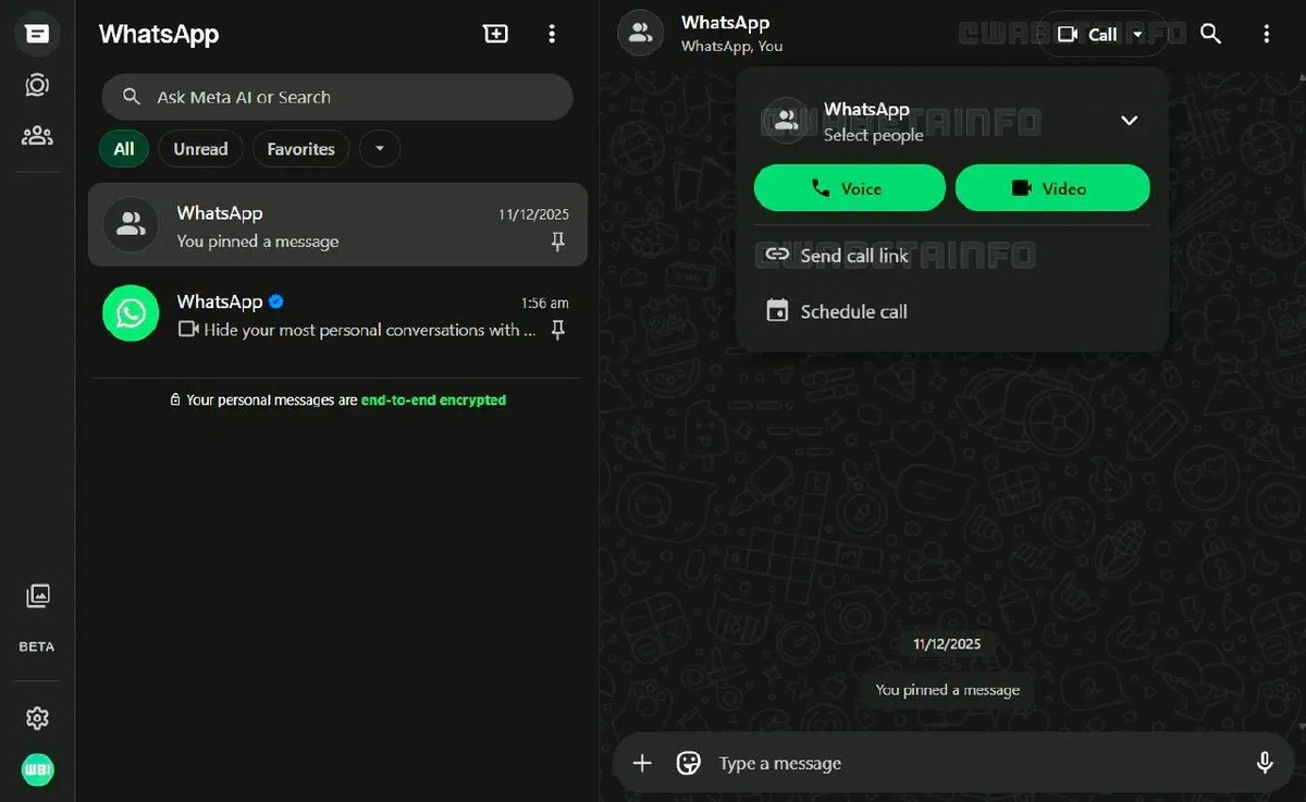 В веб-версии WhatsApp появится возможность совершать аудио- и видеозвонки в групповых чатах. На старте функция будет доступна для групп до 16 человек, позднее — до 32 участников. Планируется поддержка уведомлений о входящих звонках, создание ссылок на звонки и возможность их планирования. https://dzen.ru/id/5c0e38ff46ef5c00aaa80527