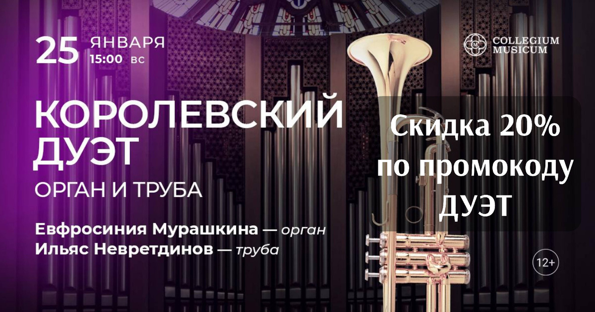 25.01.2026. в 15:00 в Московском кафедральном лютеранском соборе св. Петра и Павла состоится концерт «Королевский дуэт. Орган и труба»