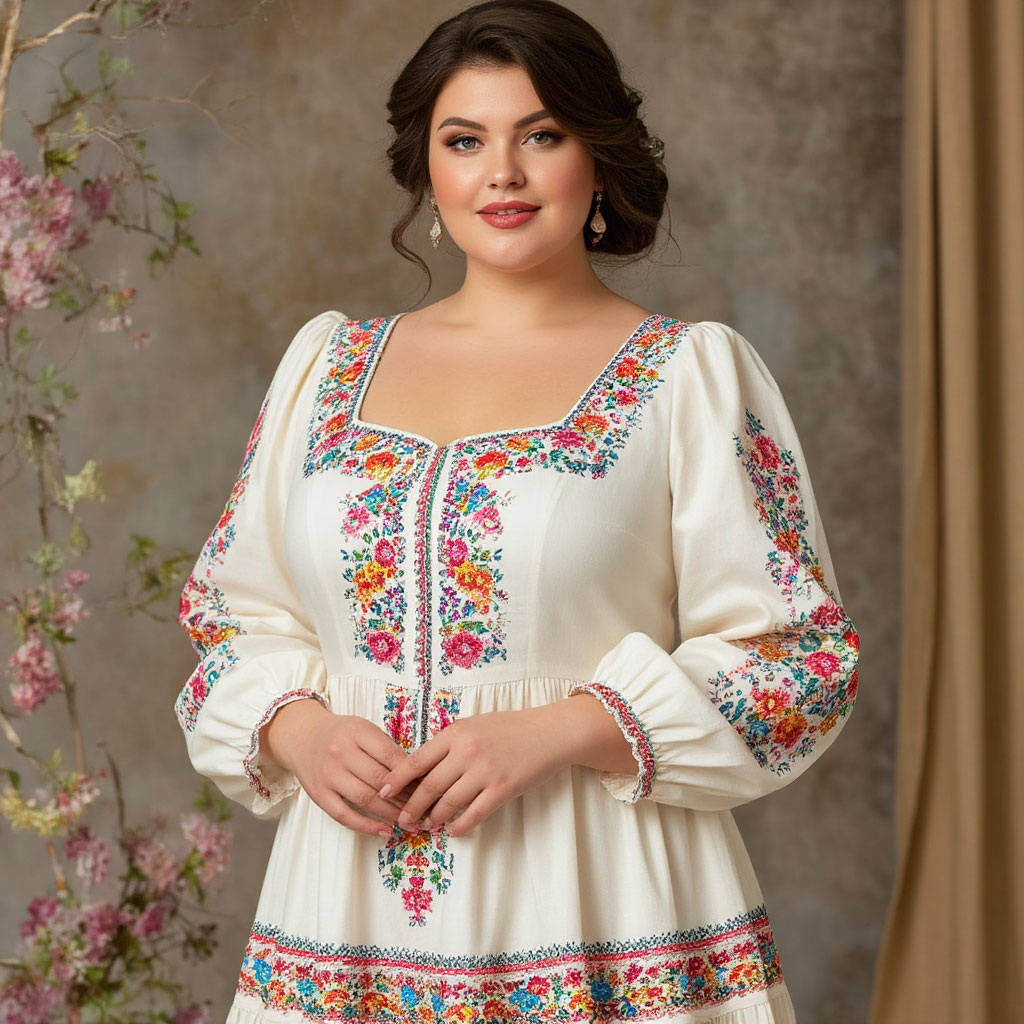 Бодипозитив и стиль: как вышивка на белом платье подчеркнёт вашу индивидуальность после 50. Гид по яркому принту 2026.