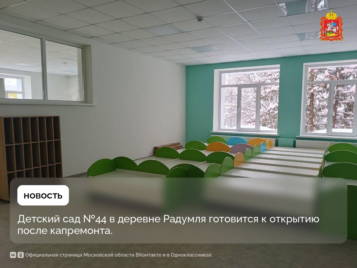 о. готовится к открытию после капремонта. В здании провели кровельные и фасадные работы, заменили все инженерные сети, окна и двери, сантехническое оборудование, а также благоустроили прилегающую территорию. В обновлённый детский сад поставили новую мебель и оборудование. Открытие запланировано на начало февраля. 🏙Подмосковье - актуальные новости
