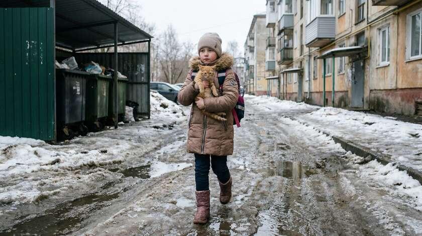 Котёнок шарахнулся ей прямо под ноги. А девочка, схватив зверька за тощие бока и прижав к груди, поспешила на уроки.