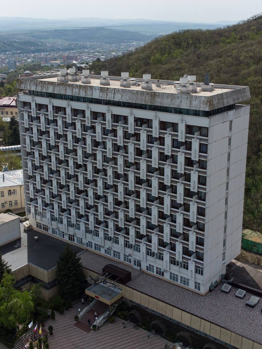 😵💫 На склоне горы Машук в Пятигорске я нашел гипнотизирующее здание. Советский санаторий «Родник» был построен в 1982 году. Главный спальный корпус — это 13-этажное здание с «залипательным» обликом, характерным для санаториев того времени: прямые линии, однообразные балконы во всех номерах, фасад светлых тонов. Такое ощущение, что смотришь на конструктор. 📷 Полярная Станция