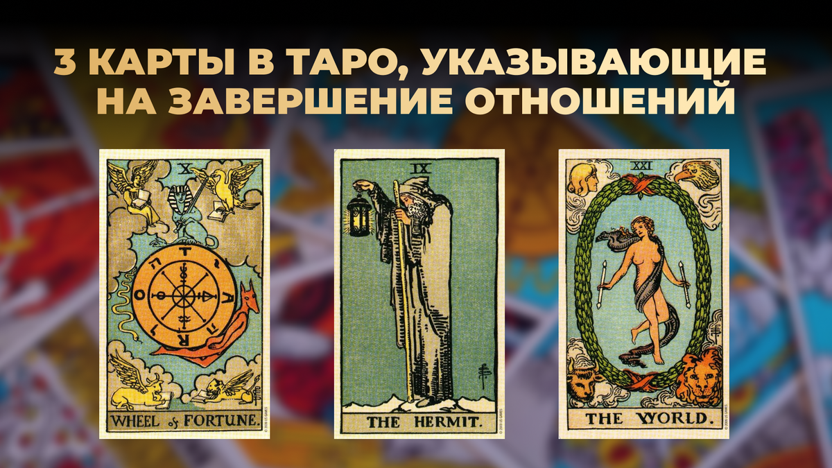 1️⃣ Колесо Фортуны – карта перемен, указывает на то, что наступает поворотный момент. И это может быть как улучшение, например, решение давних проблем или укрепление связи, так и ухудшение – конфликт и повторение негативных сценариев. Поэтому если отношения уже были нестабильны, то карта может указывать на их завершение. 2️⃣ Отшельник – символизирует потребность в уединении, саморефлексии и поиске себя. Может показывать паузу, но частенько этот поиск себя ведет к осознанию, что отношения не могут дать того, что человек хочет на самом деле. 3️⃣ Мир – часто она кажется исключительно позитивной, ведь символизирует завершение цикла и достижение гармонии. Однако в контексте отношений может показывать конец определенного этапа, когда отношения больше не могут развиваться. И это не обозначает непременно конфликт или ссору, скорее чувство, что оба партнера уже достигли своего потолка и исчерпали потенциал быть вместе. И это расставание может быть мирным, вдумчивым и даже наполненным благодарно