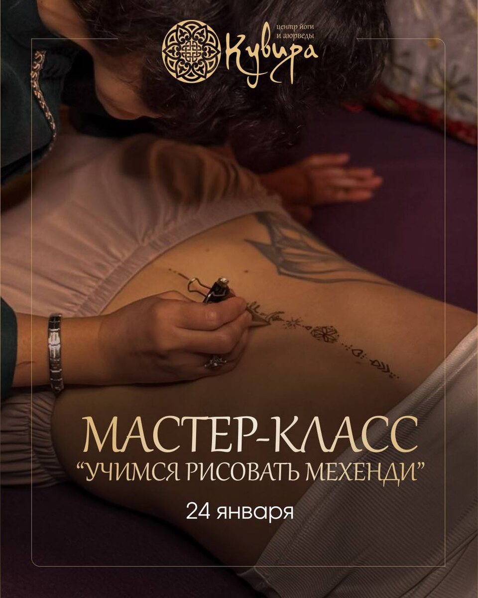 ✨ 24 января приглашаем вас на мастер-класс по мехенди — древнюю практику рисования хной, которая изначально была не украшением, а женским ритуалом 💖 Исторически мехенди создавали медленно, в тишине или мягком общении — как форму поддержки, защиты и благословения ✨ Мехенди — это: 🌿 мягкая медитативная практика и способ замедлиться 🌿 творческое самовыражение и контакт с собой 🌿 развитие концентрации и чувствительности 🌿 бережный уход за кожей благодаря натуральной хне 🌿 тёплая атмосфера женского круга На мастер-классе мы будем работать с лианами — символом женской силы без борьбы: мягкой, текучей, защищающей без напряжения. 📅 24 января в 15:00 ✨ Подходит даже тем, кто никогда не рисовал Запись открыта — @YogaKuvira
