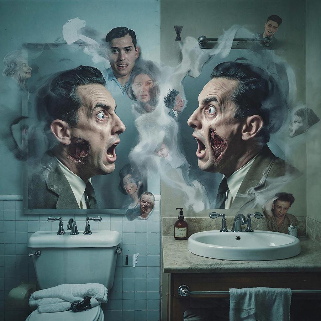 Джерри стоял перед раковиной, вцепившись белыми костяшками пальцев в её края. Он смотрел не на своё отражение, а сквозь него, его лицо было искажено чистейшим животным страхом. Потом он медленно, как в замедленной съёмке, повернулся к жене. Но это был уже не её Джерри.