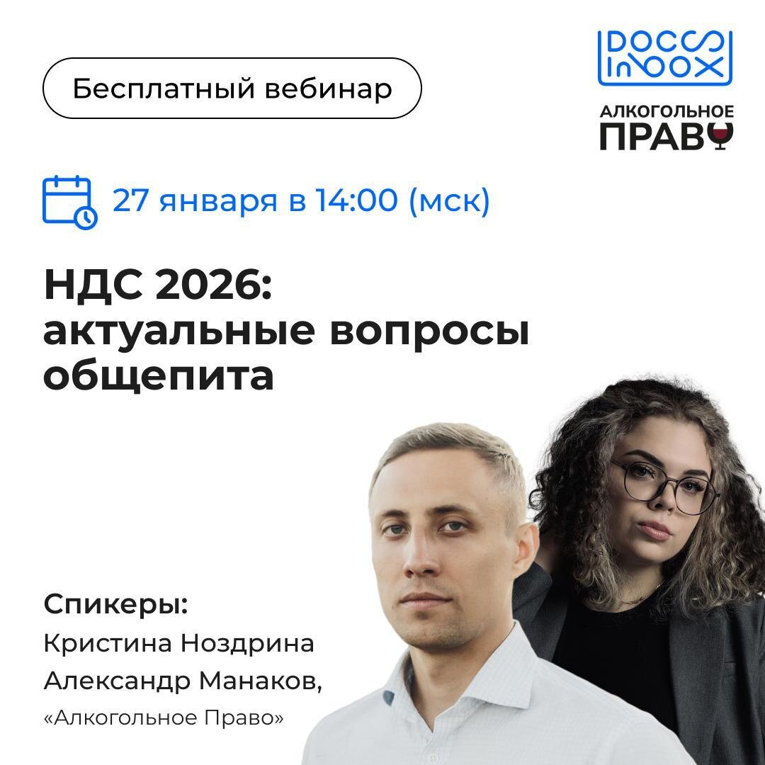 типа волшебной таблетки. 📌 27 января в 14:00 мск DocsInBox и Алкогольное Право приглашают на вебинар «НДС 2026: актуальные вопросы общепита». О чем вебинар: 🔹 Главное о налоговой реформе и других изменениях 🔹 Выбираем систему налогообложения и применяем льготы 🔹 Ответы на частые вопросы Спикеры: Александр Манаков и Кристина Ноздрина, «Алкогольное Право» 👉🏻 Регистрация на вебинар на сайте 👉🏻 Регистрация на вебинар через telegram-бот Заняты? Заполните форму, и вам отправят запись ❤️