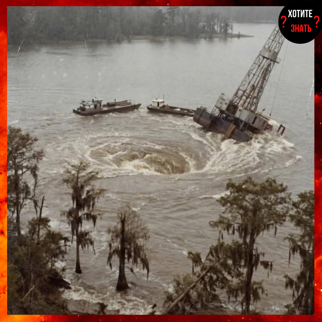 Приветствую вас, друзья! С вами канал «Хотите Знать?» и я, его автор, Леонид Блудилин. В 1980 году в штате Луизиана одна-единственная инженерная ошибка превратила тихое озеро Пеньер в декорацию апокалипсиса. Инженеры нефтяной компании Texaco вели бурение неподалёку от берега и даже не подозревали, что находятся прямо над соляной шахтой глубиной около четырёхсот метров. Ошибка в координатах оказалась роковой: 35-сантиметровое буровое сверло пробило потолок подземных выработок. Поначалу всё выглядело как обычная аварийная ситуация. Но спустя считаные минуты стало ясно — озеро начало… исчезать. Пресная вода растворяет соль стремительно. Крошечное отверстие расширялось с пугающей скоростью, и вскоре поверхность воды закрутилась в гигантский вихрь. Он втянул в себя всё: буровую вышку, одиннадцать барж, деревья, причалы и целые пласты береговой линии. Озеро глубиной всего метр-два превратилось в колоссальный сифон, всасывающий сам себя. Под землёй в этот момент более пятидесяти шахтёров ок