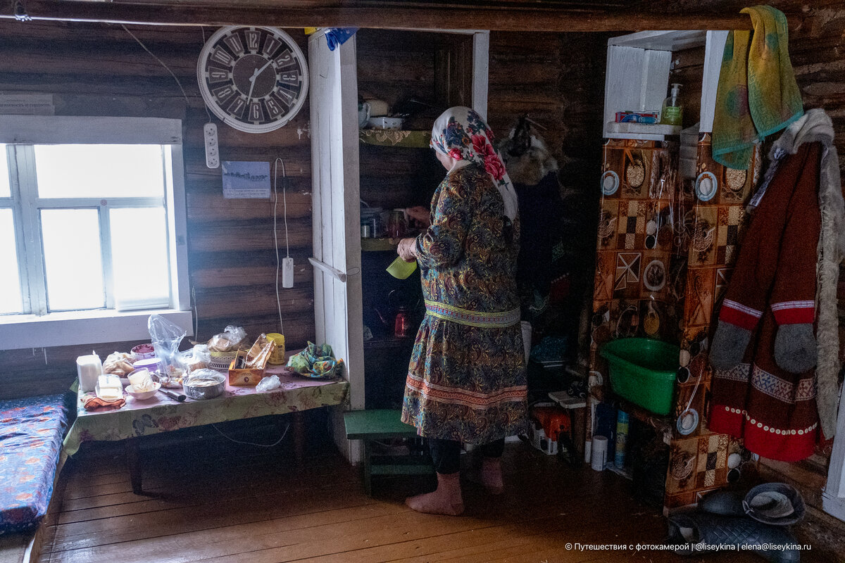 Внук завёл снегоход. Помахал рукой. Через 40 минут он доедет до дороги, пересядет в машину, ещё через час будет дома — в квартире с горячей водой, интернетом, магазином за углом. А бабушка останется здесь. Одна. В избушке 4×5 метров посреди заснеженной тайги. На десятки километров вокруг никого. До магазина полтора часа пути. Телефона нет. Канализации нет. Электричество только когда включишь генератор. Я спросила: "А не страшно одной?" Она удивилась: "А чего бояться?". А еще я спросила: "а почему не переедете к внуку?" На небольшой полянке посреди заснеженной тайги стоит несколько деревянных избушек. В одной живёт героиня моего сегодняшнего рассказа. Постоянно. Одна. Есть строения для хранения дров, техники, дом сына с семьей, которые приезжает сюда время от времени. Но постоянно живут тут она одна. Это стойбище ханты — одного из коренных малочисленных народов Севера. Сейчас в ХМАО около тысячи ханты ведут традиционный образ жизни в тайге, с оленями, без цивилизации. И в отличие от т