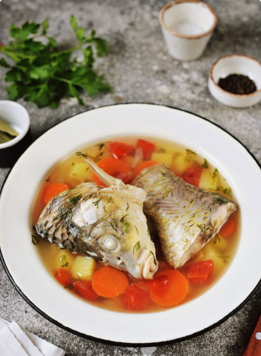 С точки зрения нутрициологии, идеальная уха — это концентрат легкоусвояемого белка, омега-3 жирных кислот, коллагена, йода, витаминов D и B12, а также минералов из овощей и зелени.