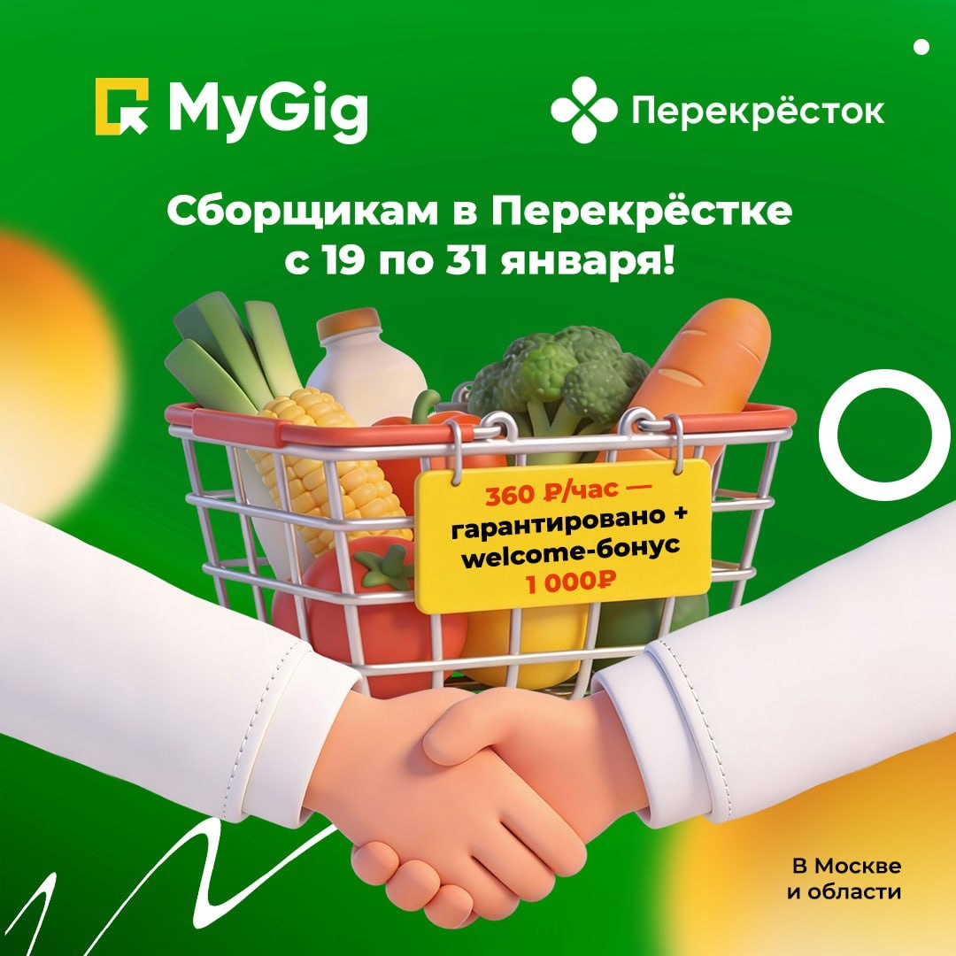 ! С 19 по 31 января в Перекрёстке в Москве и Московской области через MyGig — особые условия для новичков и тех, кто ещё не уверен в силе и выгоде сдельной подработки сборщиком: ✅ Выходите на смены сборщиком заказов в магазины «Перекрёсток» (МСК и МО) ✅ Если выплата после смены составила меньше 360 ₽/час — MyGig доплатит разницу в течение 5 рабочих дней после подтверждения смены в приложении ✅ Если больше — получаете, сколько заработали — вы уже профи и наш краш 💛 ✅ +1 000 ₽ — приветственный бонус для всех, кто регистрируется впервые на платформе и выходит на сделку. Оплачиваем после выполнения 3-ей смены сборщиком в Перекрёстке 😉 ❗️ Главное — не отменяйте подработки по вашей инициативе в этот период, иначе вы теряете право на специальные условия Кто может воспользоваться? — Исполнители, отработавшие менее 3 сдельных смен за всё время на MyGig (по любому бренду) — Новые гигеры, зарегистрировавшиеся платформе впервые в период с 19 по 31 января 💪 Это лучшее время, чтобы попро