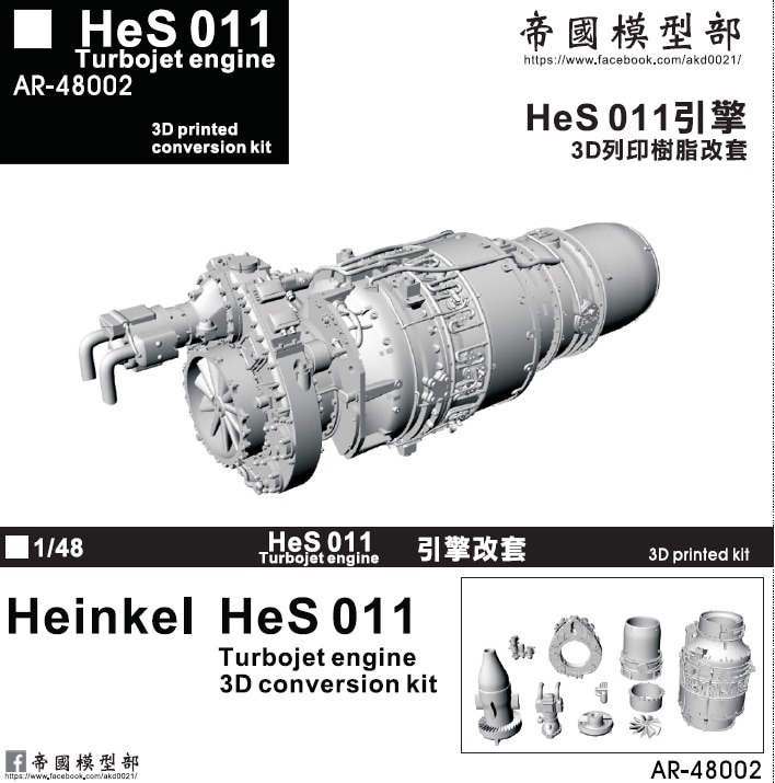 Тайваньская Empire Model выпустила на 3D-принтере модель авиадвигателя Heinkel HeS 011 в масштабе 1/48: