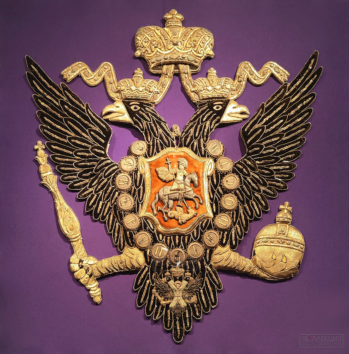 В траурном кортеже участвовали и титульные гербы. Их было создано более тридцати – изображений царств, провинций и губерний, что входили в полный титул императора. Гербы были представлены на знаменах и на попонах лошадей.