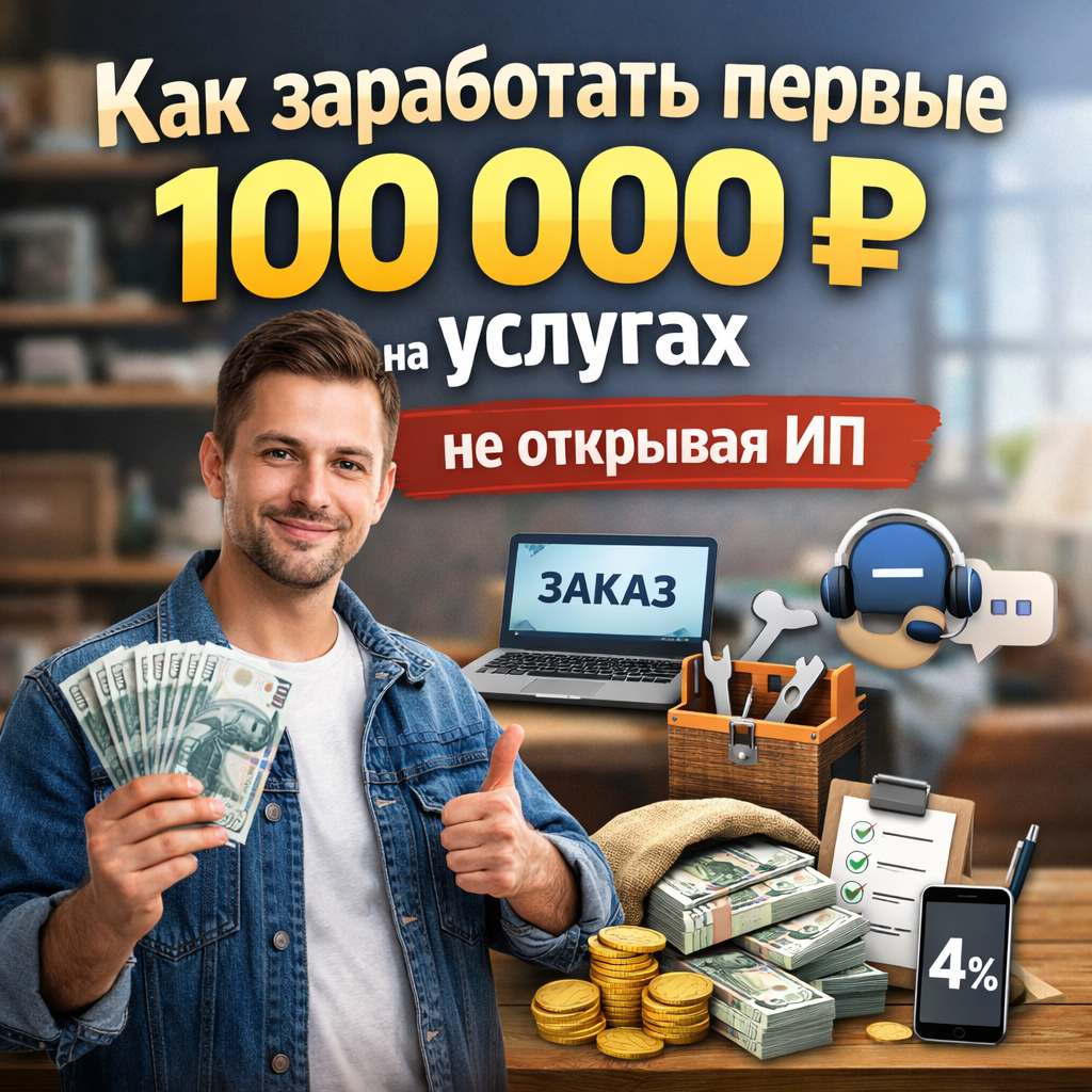 Хорошая новость — первые 100 000 рублей можно заработать легально и без открытия ИП. Ни офиса, ни сотрудников, ни вложений.