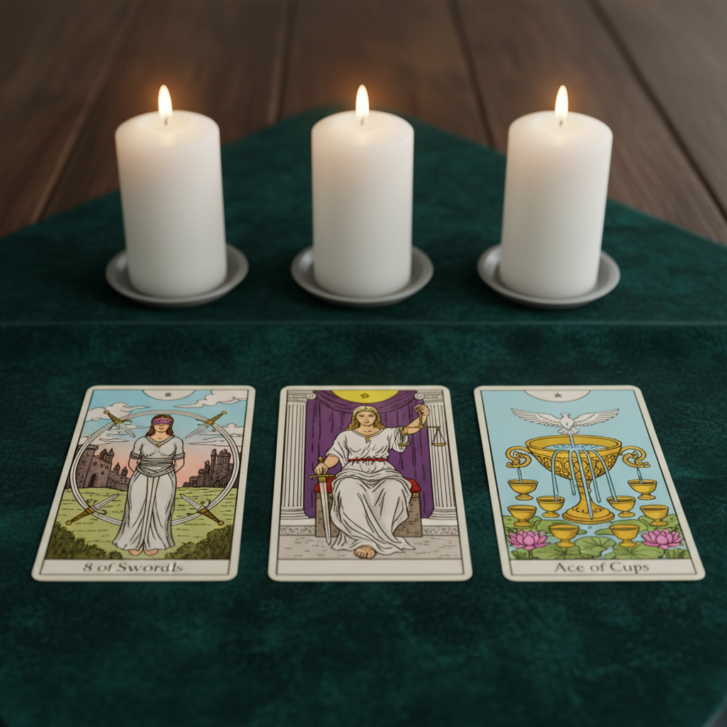 Краткий ответ: В ближайшее время вас ждет выход из состояния парализующей неопределенности и страха. Произойдет некое событие или разговор, который внесет абсолютную ясность и расставит все по своим местам (хорошее или плохое — но честное). Итогом этого станет возможность начать все с чистого, эмоционально наполненного листа, как будто вы открываете совершенно новую главу. А теперь давайте пройдем по этому пути шаг за шагом. Это то, в каком состоянии вы находитесь (или будете находиться) в самом начале этого периода. Эта карта описывает ощущение тупика и бессилия. А вот и катализатор перемен! Правосудие (Справедливость) — это Старший Аркан, что говорит о важности и неотвратимости этого события. Туман 8 Мечей будет рассеян лезвием правды. Это то, к чему приведет момент истины, принесенный Правосудием. После того, как правда выйдет на свет, и тюрьма 8 Мечей рухнет, перед вами откроется новая возможность. Вас ждет освобождение через правду. Вы выйдете из состояния мучительного застоя и ст
