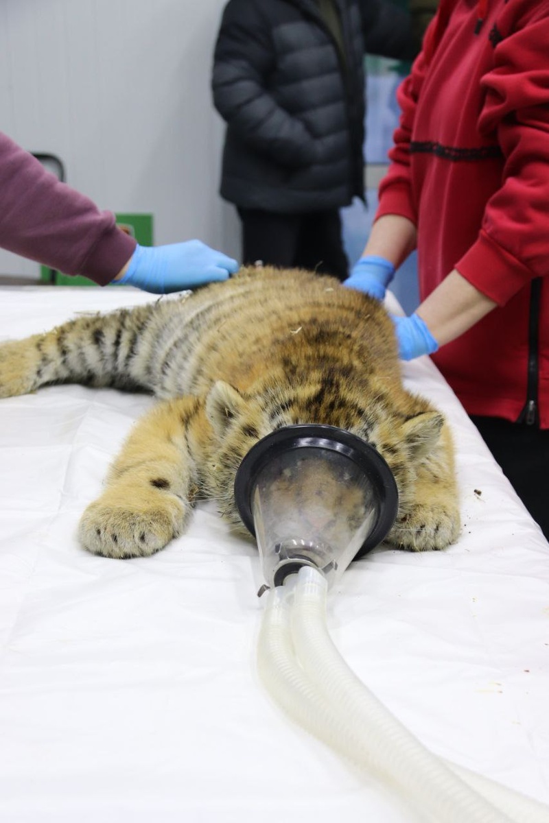 Делимся фотографиями с планового ветеринарного осмотра маленьких тигрят