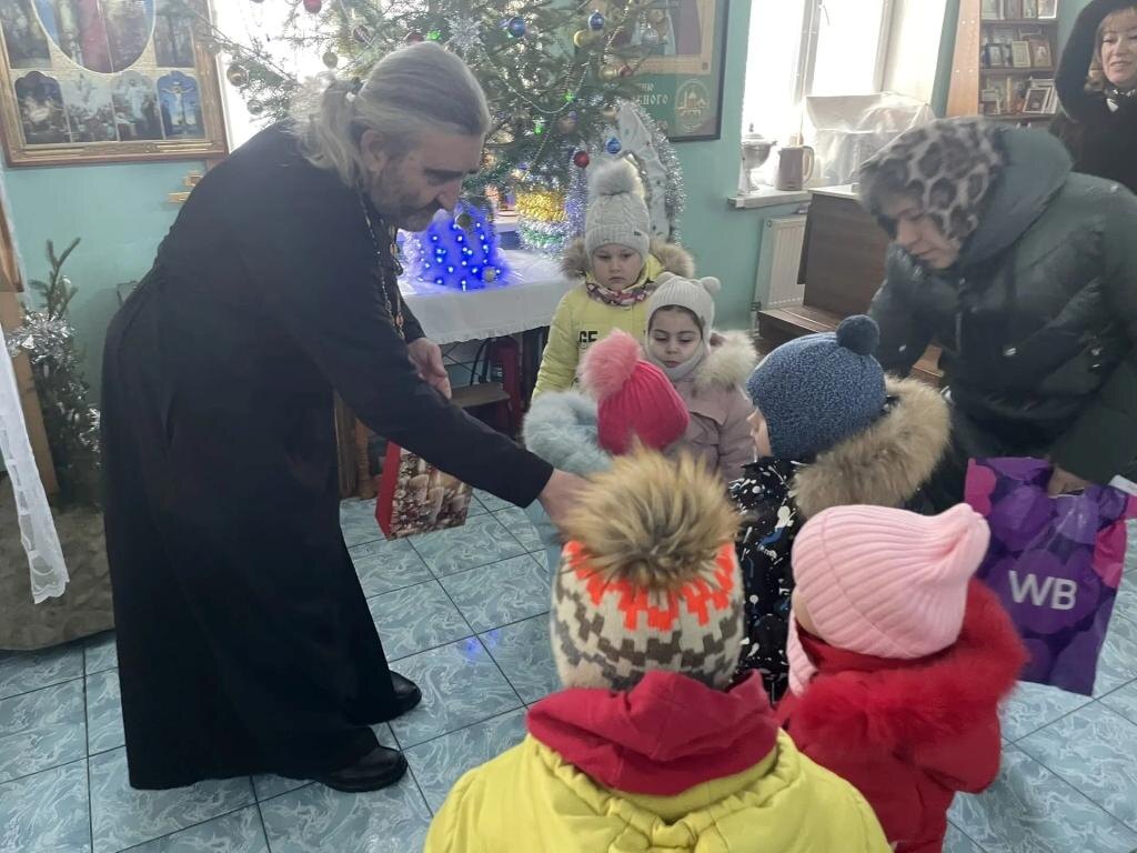 Отец Виталий провел для ребят экскурсию по храму, пояснил его устройство и познакомил со святынями, а затем рассказал о празднике Рождества Христова и традициях
