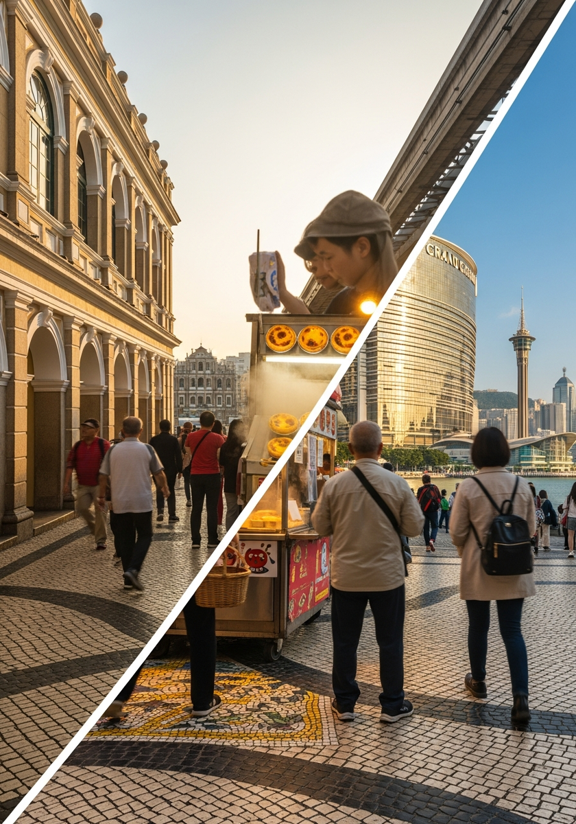 - Что обязательно нужно увидеть в Макао за один день кроме основных достопримечательностей? Не пропустите собор Святого Доминика на площади Сенадо, прокатитесь на гондоле в Венецианце, попробуйте знаменитые португальские пирожные паштейш и поднимитесь на Башню Макао на закате для панорамного вида.
